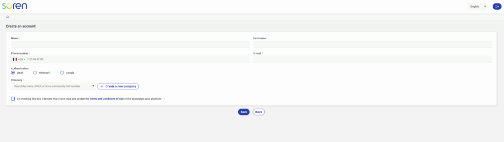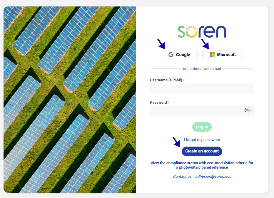 To access the ecodesign.solar app, sign-up using your email address, or log-in with your Google or Microsoft account
